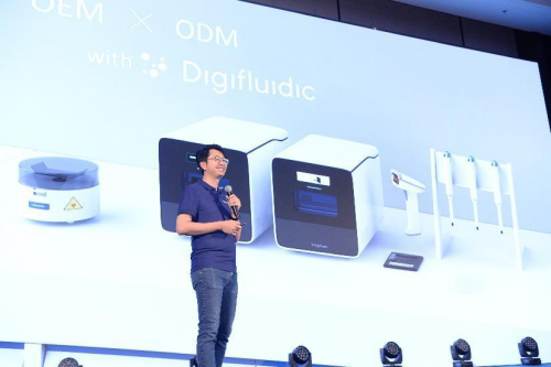 Digifluidic迪奇生物最新一代产品即时检测(POCT)一体机Virus Hunter Plus在本次盛会隆重发布,由Digifluidic迪奇生物总经理 陈天蓝博士进行产品演说。