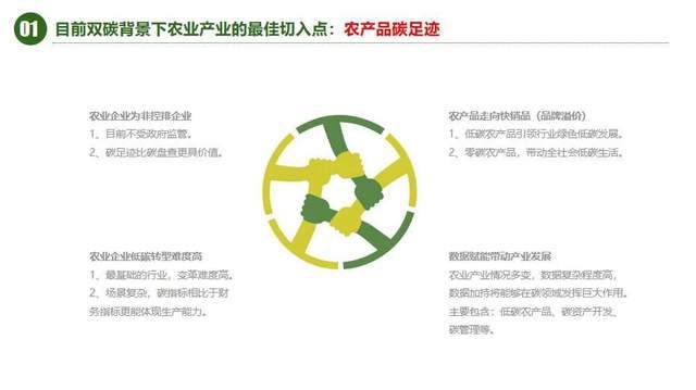 段老师表示,农业是重要的温室气体排放源之一,同时也有巨大的碳汇能力。农业涉及粮食安全,是保供的行业。同时,农业碳排放相对于其他行业来说较低,因此短时间不会纳入控排市场,现阶段农业低碳转型需要和市场需求相结合,产品是重要的切入点。