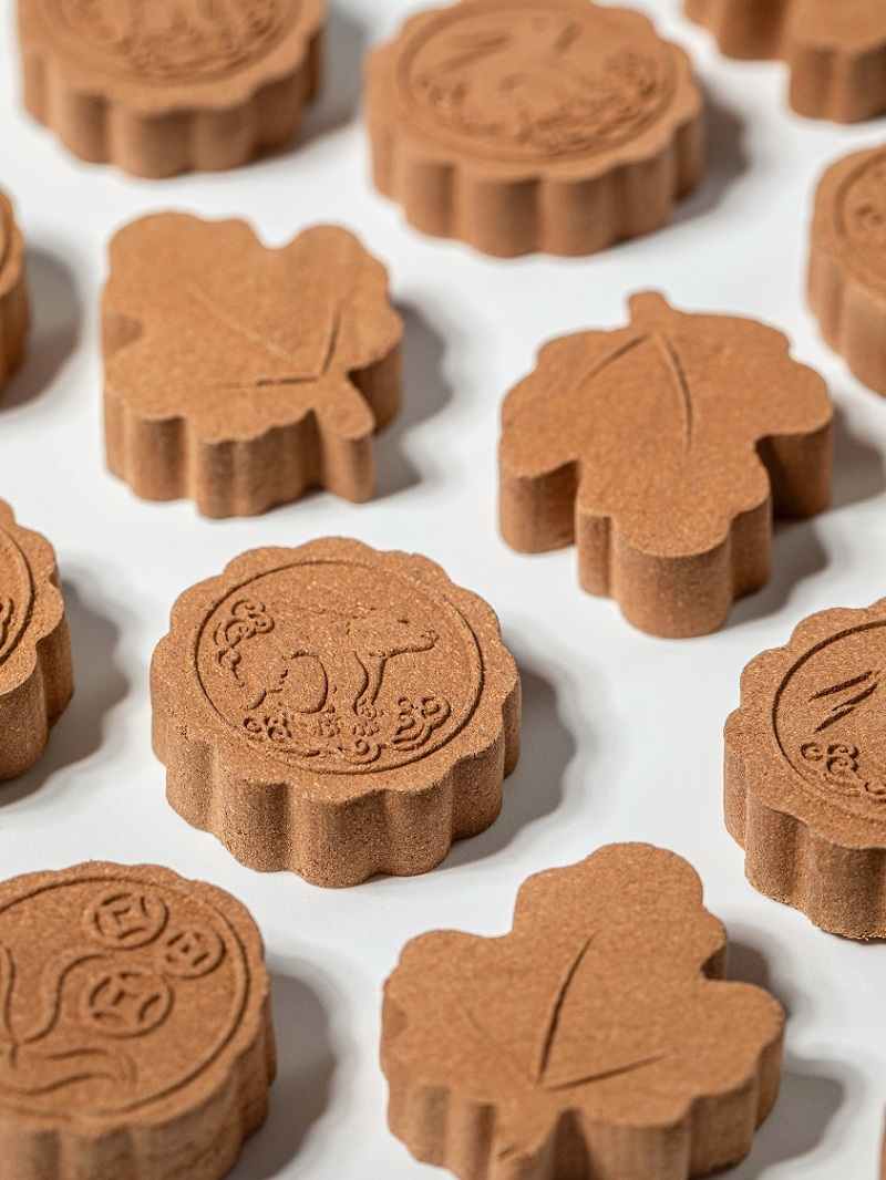 更令人惊喜的是,暖香炉礼盒内含有六块古方香饼,像是小小月饼,它是另一种值得品鉴的用香方式,将珍贵沉香手工压制成饼,并制成不同的造型,凭添用香趣味,隔热熏香10分钟后,香气逐渐弥散。将这份心意之礼,赠予用香之人,是古色古香,又别出心裁的中秋祝福。