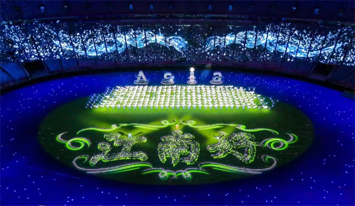 此次闭幕式上,中润光电技术团队运用先进的LED显示屏,再一次展示了动人的科技之美。6000平米的透明网慕屏,与亚运史上首创的数控草坪一起,巧妙配合勾勒出绚烂多变的影像,生动展现杭州绿水青山生态魅力,表达亚洲“山水相连、人文相亲”的历史情谊。