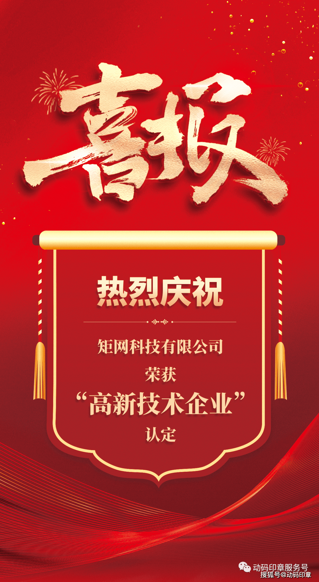 获得高新技术企业的认定,是国家对矩网科技核心自主研发成果、科技成果与转化能力、研发组织管理水平,以及成长指标的充分肯定及认可,也是我们在发展过程中具有里程碑意义的一项重大荣誉和奖项成果!