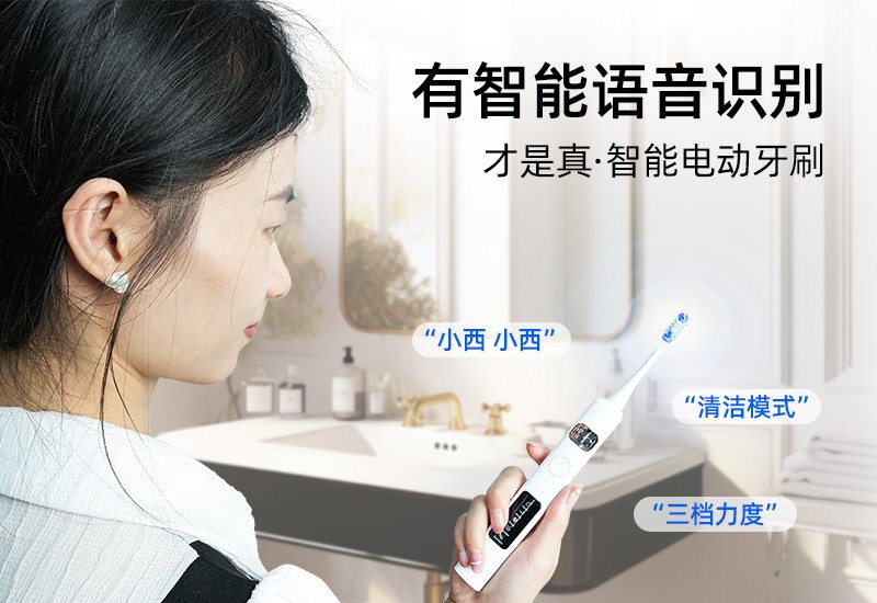 这款电动牙刷吸引人的除了合金材质,还有智能语音唤醒功能是蜗西西合金声控电动牙刷M5的一大特色,你只需要按下开关键,使用唤醒词“小西,小西”进行语音唤醒后,即可根据自己的需求进行语音操作命令,免去了频繁的按键切换操作,有语音唤醒功能的电动牙刷才算真正的智能电动牙刷。