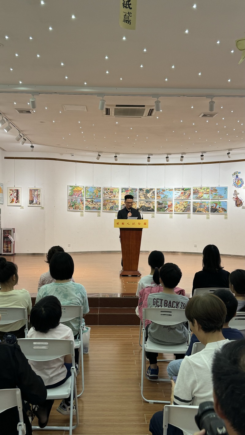 而后一位家长代表登上舞台,用心的分享了为何让孩子踏上绘画学习之旅以及在平日对孩子的教育理念。他表达了在这片充满色彩的画布上,让我们看到了孩子们的成长足迹,更见证了艺术给予他们的无限可能。我们选择让孩子接触绘画,并非只是为了培养他们的艺术天赋,更是为了在思维、情感和创造力上开启一扇通往未知世界的大门。在日常教育中,我们注重的不仅是知识的传递,更是塑造一个有独立思考能力和创意表达能力的个体。这画展是我们用心灌溉的果实,是我们对孩子无限可能的信仰。这位家长代表的话语引起了在场家长的共鸣,掌声此起彼伏。