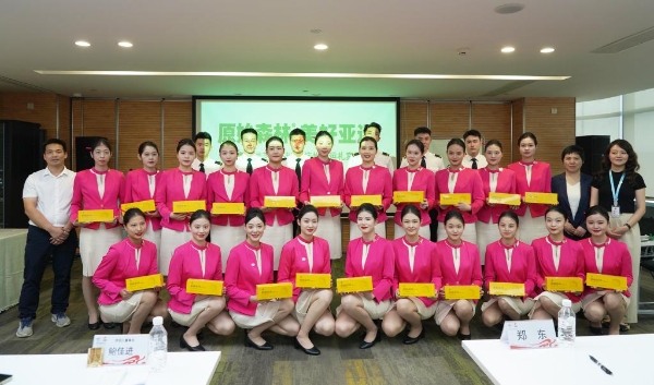 据了解,杭州亚运会开幕式上的引导员均来自浙江长龙航空。当天下午,浙江长龙航空相关领导介绍了亚运会礼宾人员从事亚运保障服务工作背后承受的高强度训练和巨大的心理压力。“开幕式上的惊艳亮相非一朝一夕能达成,而是历经了数月‘腿夹纸、头顶砖、背夹棍’等魔鬼式训练,每个训练环节都‘无微不至’,甚至细微到脚腕关节的力度角度、面部微笑的弧度、眼神聚焦的方向等等,这才有了开幕式上的落落大方和自信从容。”