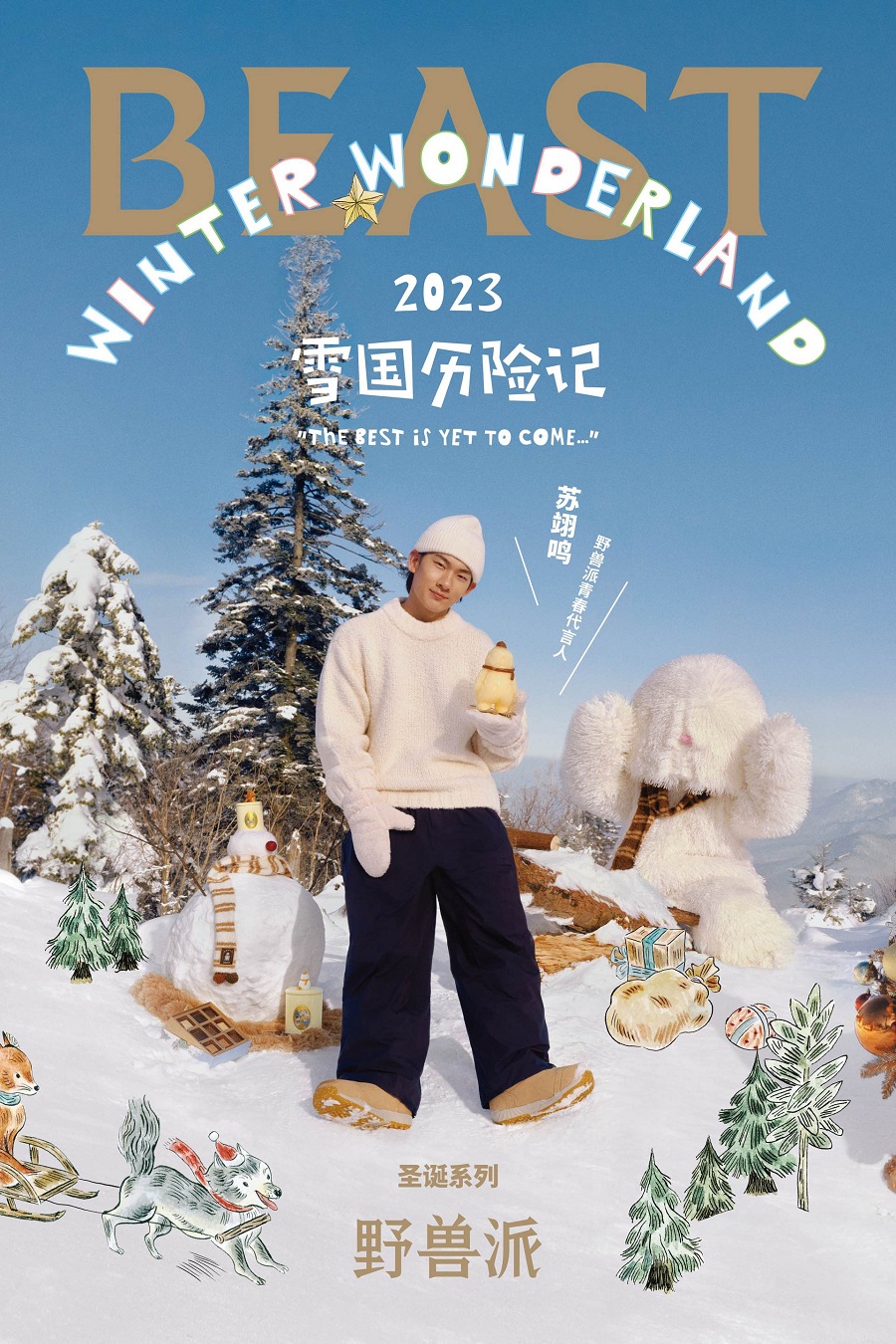 在野兽派最新的圣诞大片中,品牌青春代言人苏翊鸣在北方雪国森林里偶遇了毛绒绒的野兽派圣诞大使雪怪,他们一起坐缆车、装扮圣诞树、堆雪人、喝下午茶,彼此都交到了最真诚的朋友,也找到了最纯真的快乐。 片中出现的雪怪也幻化成野兽派圣诞限定造型蜡,头戴棒球帽,扎着小围巾,脚踩双板在认真练习滑雪,散发冷杉与杜松子的香气,为冬日带来温馨快乐的居家氛围。