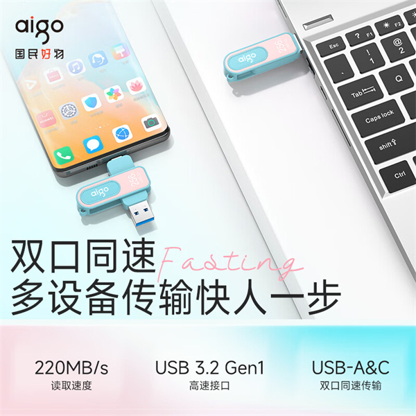 当今应用端照片视频数据量巨大,各种软件数据和聊天记录每天增加,可谓真正走进数据“爆炸”年代。手机等设备存储压力陡增,只能寄希望于移动存储设备。传统移动数据存储设备速度慢、文件易损、便携性差、接口转换繁琐,使用体验无法令人满意。aigo深耕移动存储领域多年,针对移动存储设备痛点,特别推出新品双接口闪存盘U352.