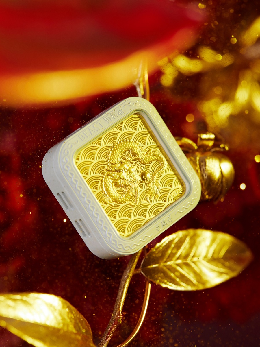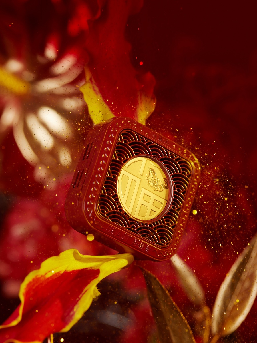 此次老凤祥携手野兽派,带来两款999足金车载香型。黄金由老凤祥打造,金福鲤鱼造型是0.1g黄金,龙腾四海造型是0.2g黄金,礼盒内含国家黄金鉴定书,真金白银。香型由野兽派带来经典的黑皮诺香和龙年新香龙之舞。同时,野兽派也随礼赠送龙年限定手提袋和红色物流箱,从外到内的新年氛围,让收礼之人,心生欢喜。