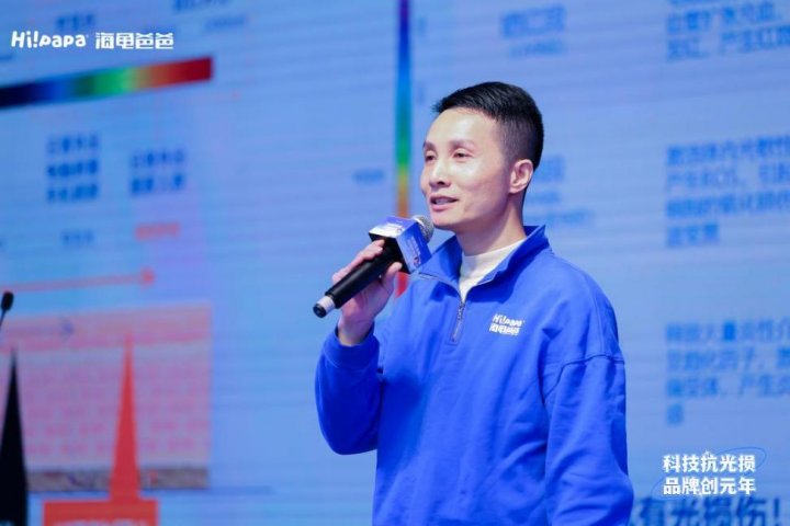 “海龟爸爸在儿童抗光损领域不仅是创新,更是行业先驱,以防晒粉体和材料创新为基础,结合前沿计算机生物学人工智能算法,立足光损伤修护来预测靶点,精准设计活性物。”海龟爸爸研发总监罗绍强会上也首度公开分享了最新研究成果,展示了团队的专业与自信。