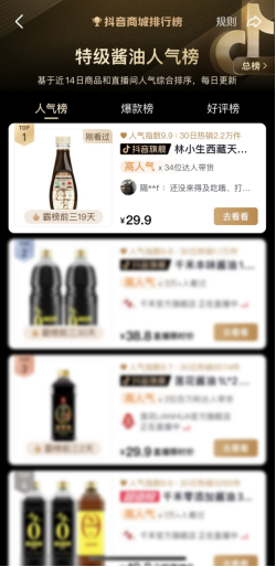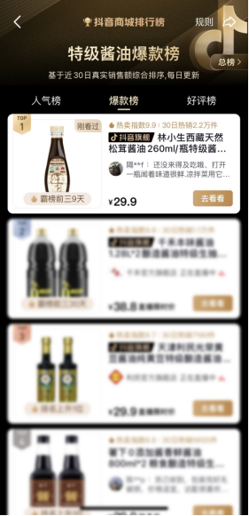 如今,健康、高品质,越来越成为人们选择和购买调味品的重要理由。近日,健康食品品牌林小生旗下新品“林小生西藏天然松茸酱油”登顶抖音电商特级酱油人气榜、特级酱油爆款榜TOP1。该产品采用林芝松茸(国家地理标志产品)、隆子黑青稞(农产品地理标志产品)等产自西藏的优质原材料,上线后迅速受到消费者欢迎。这是林小生继“50%佐餐酱系列”、“0脂鲜椒酱”等产品之后,打造的又一款爆款健康调味品。
