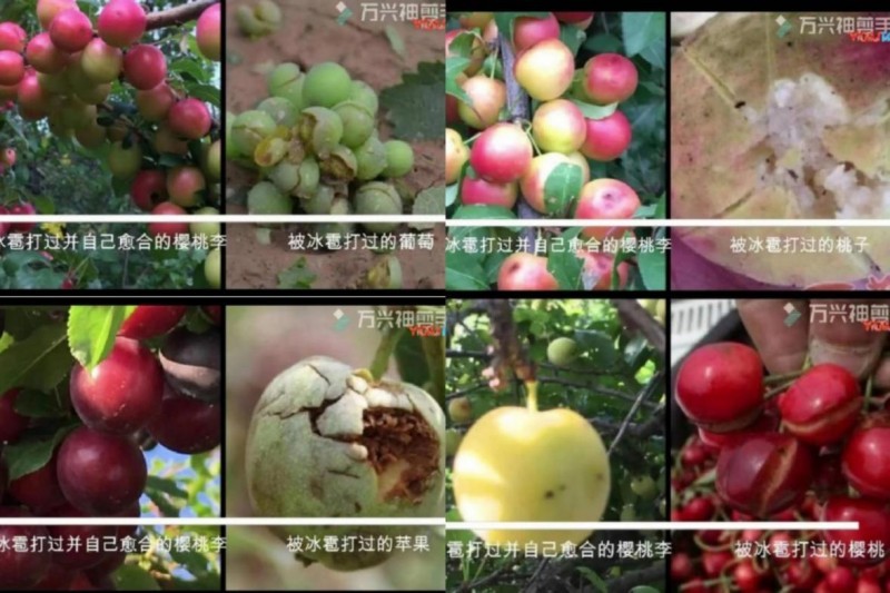 ▲樱桃李和其它水果被冰雹打过以后的对比