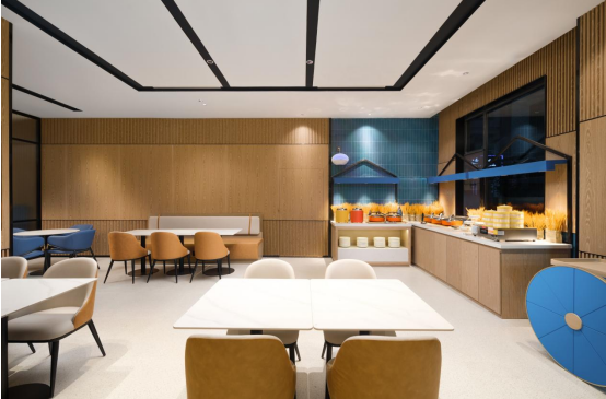 现代简约的设计与时尚元素的点缀,使得整个公共空间既宽敞通透又舒适和谐。休闲区的反社交半包裹式沙发体现了“亲密有间”的社交理念,MINI会议室为商务旅客提供了便利的会议空间。玻璃植物展示柜和绿植为客人带来清新的空气和愉悦的视觉享受,而带有帘幕的小型会客厅则为追求私密感的住客提供了更多的选择。