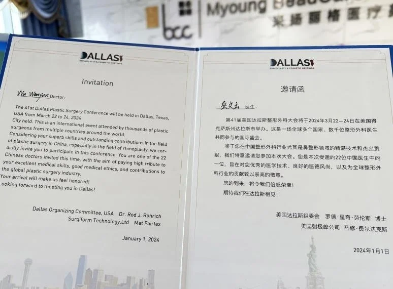 2024年3月22日-24日,第41届美国达拉斯国际整形外科大会将在美国得克萨斯州达拉斯举行,北京米扬丽格巫文云院长作为最早一批接受综合鼻整形理念的医生,受邀参加本次峰会。