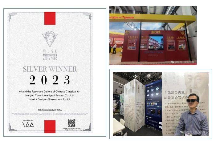 在2023年7月,在俄罗斯叶卡特琳娜堡举办的第七届中国-俄罗斯文化博览会上,南京大学和投石智能联合主办的“中国古典艺术的AI计算、生成与美育”创作实践成果,作为中国特色文旅的代表受邀参展,并获得美国“设计界奥斯卡”——2023缪斯设计奖银奖,12月代表中国文旅企业亮相日本东京的内容营销展览会并取得了巨大成功。这一创新性技术的展示,不仅获得了现场观众的一致好评,更被新华网、南京日报/紫金山新闻、南报网等权威媒体平台报道,引起了业内外广泛关注。目前,第二期《AI与中西视觉文明互鉴”美育实践展》正在策展制作中。