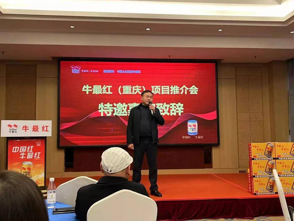 在推介会现场,牛最红志合国际贸易(四川)有限公司李董事长与重庆潼米商贸有限公司雷董事长分别就牛最红品牌发展历史、全国市场推广情况、未来合作发展愿景等方面作了介绍。牛最红志合国际贸易(四川)有限公司市场总监钟建平作了项目计划书的详细阐述,从饮料市场分析、公司及产品介绍、品牌宣传、创富模式及加盟合作等情况作了讲解。来自政商界、各行业精英、重庆各地的意向代理商们齐聚一堂,共话“牛最红”的重庆市场蓬勃发展之路。公司团队的其他成员们以饱满的热情和专业的介绍,向与会嘉宾们阐述了牛最红品牌的独特魅力和市场潜力。他们不仅详细解读了牛最红产品的独特之处和市场优势,更是分享了公司未来的发展规划和市场策略,赢得了在场嘉宾的一致好评。