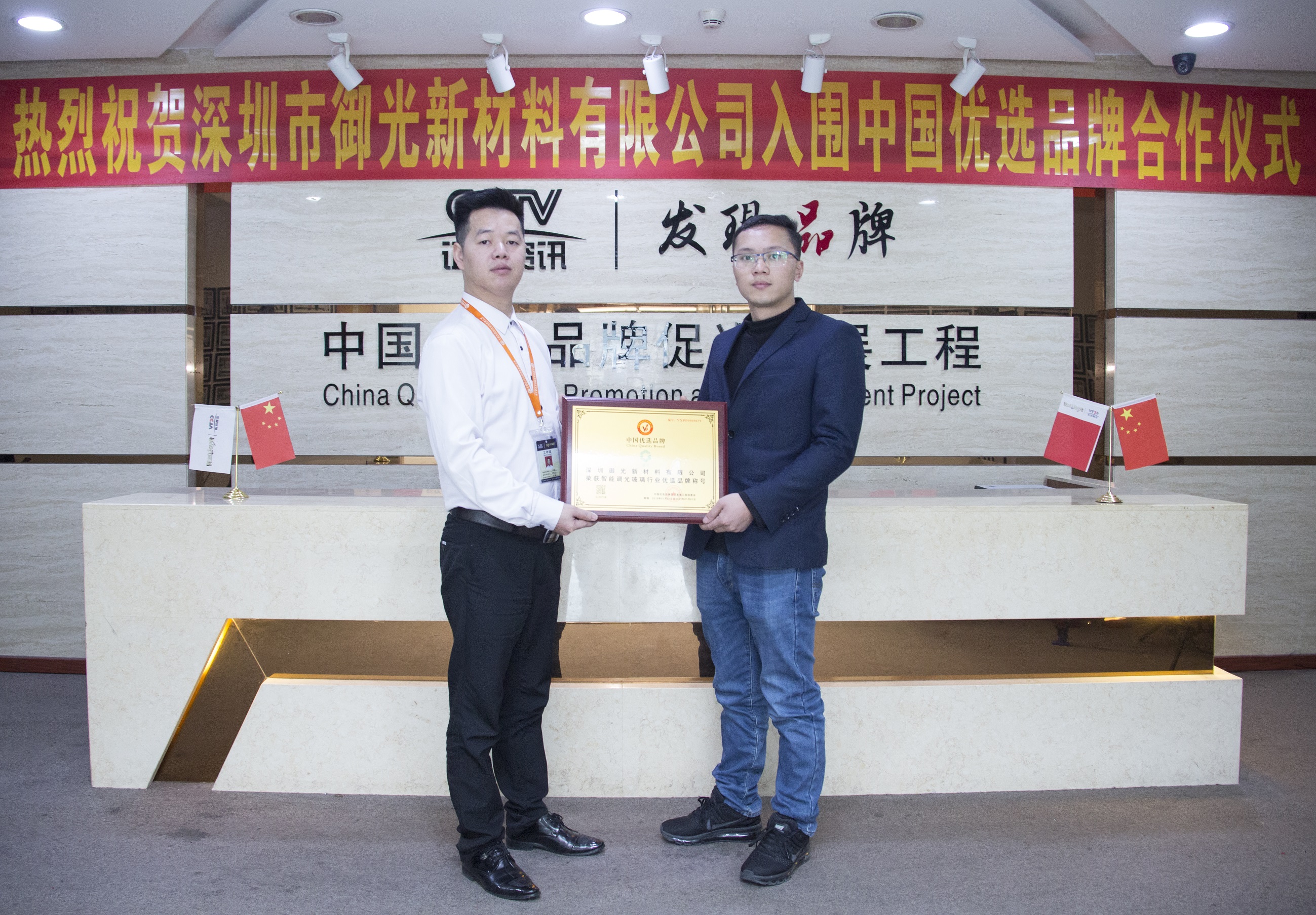 2018年1月,深圳御光新材料有限公司成功被中国优选品牌促进发展工程选中,评选为“中国优选品牌”,并授予其“智能调光玻璃”行业优选品牌称号,以兹鼓励。