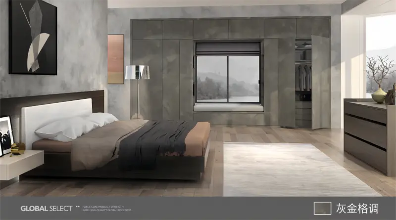 犹如深夜中的雾气里洒了片片金光,在淡金色的鎏光纹理里,亲身感受到白昼与黑夜的交替。这个色调的板材,无论是定制为嵌入式衣柜还是茶几,都彰显着大气、简约,是成年人在名利场里的象征,是古井无波之中一抹灵动的解读