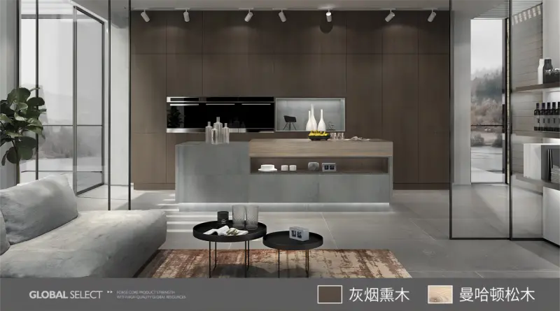 采用当下较为流行的百搭原木纹理,适用于多种风格,兼容性强。马棕烟熏木透露着高端的焦糖色,俗话说色彩本身不拥有情绪色彩,而像这样的中性色有着更多可能性,与暖色搭在一起,就是戚糖般的甜蜜;与冷色相配,就是落在地面上的一方沉稳。