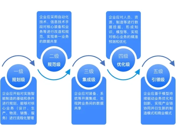 (一)深入推广《智能制造能力成熟度模型》及《智能制造能力成熟度评估方法》标准内容。助力主管部门推进企业智能制造建设工作,制定有针对性的智能制造发展鼓励政策,加快智能制造发展步伐。