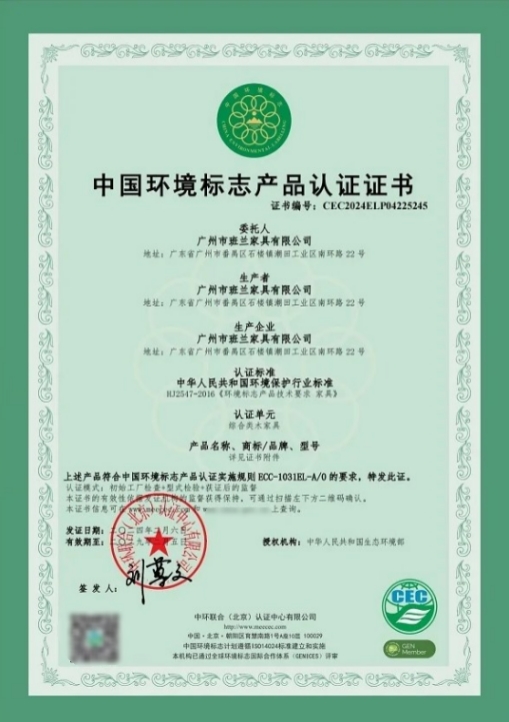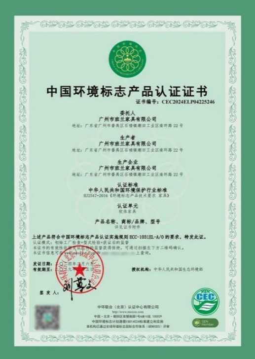 每年315,央视如春晚般喧闹。家具行业作为消费领域的重要组成,一直备受镜头关注。近两年,央视新闻曾发布过《甲醛超标!主流电商平台木制家具4成不合格》的相关报道。“在市监总局的抽样调查中,有些木制家具发生了倾翻或断裂,使用时可能砸伤或夹伤消费者,有些木制家具甲醛释放量超标,长期使用可能存在致癌风险……如果消费者买到了名不副实的产品,又苦于没有证据,往往很难维权……”如此轻视质量追求短期效益的品牌,往往会在经历了市场的大浪淘沙后,销声匿迹。反观那些保持着蓬勃生命力的家具品牌,十年后又发强音。 2024年初,班兰家具正式通过了目前中国国内最高标准级绿色环保认证,获得由中华人民共和国生态环境部授权、中环联合(北京)认证中心颁发的中国环境标志产品认证(别名:十环认证)证书。这是继取得ISO9001质量管理体系认证、ISO14001环境管理体系认证后,班兰家具为消费者提供的质保放心的又一颗定心丸。