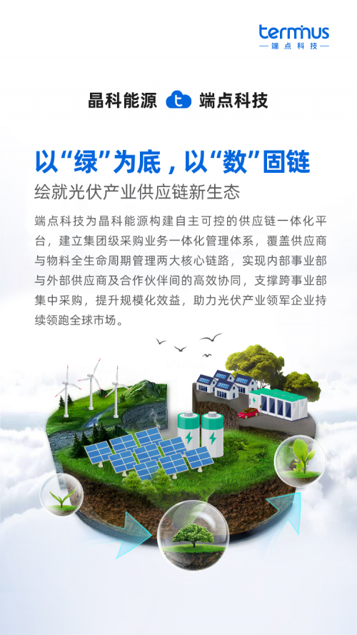 全球化的布局和发展驱动各集团供应链进行跨越式演进与升级。杭州端点网络科技有限公司(以下简称“端点科技”)携手晶科能源股份有限公司(以下简称“晶科能源”)成功打造的供应链一体化平台,标志着循环可持续的生态供应链正在成为推动光伏产业前行的新引擎。