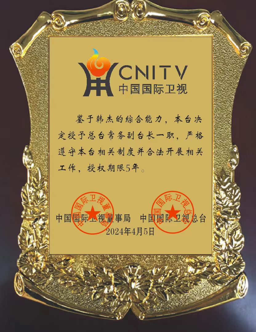 :中国国际卫视董事局主席、总台台长李曼华 任命韩杰担任常务副台长...