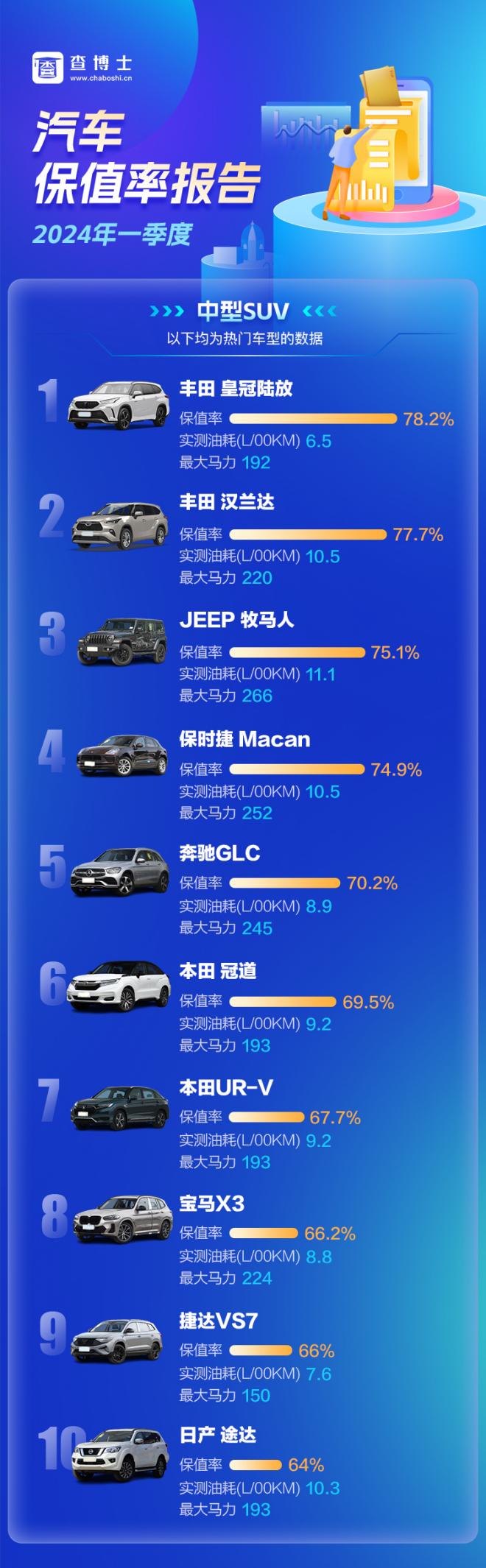 查博士保值率报告,旨在将最新的研究成果传递到汽车行业内各个环节。通过了解、管理、提升和应用汽车保值率,为主机厂、汽车经销商、二手车经销商、金融机构未来开展回购、置换、租赁、金融、新车定价等服务提供重要数据参考,也为个人消费者买卖车辆时提供数据对比。