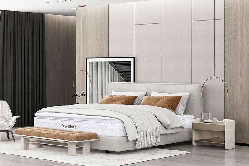 康姿百德床垫做工精细,设计美观。床垫的制造过程非常精细,每一个部位细节都经过精心雕琢,确保床垫的高品质。无论是内部的填充物还是外部的面料,都是经过严格的挑选和处理,确保产品安全与舒适。不仅如此,床垫外观精美,线条流畅,简约而不失雅致。这不仅让床垫在卧室中成为一道亮丽的风景线,增添了舒适感的同时还提升了卧室的整体美观度。
