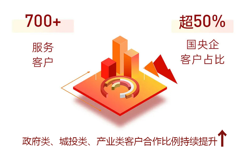 瑞捷持续开拓业务深度与广度,针对6大服务客群的特点与需求,研发“IDI风险管理服务”等针对性产品和服务,实现服务闭环,同时结合市场变化调整客户结构,政府类、城投类、产业类客户合作比例不断提升。