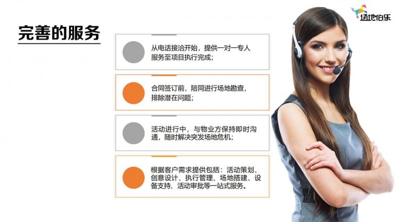 截至目前,平台上线活动场地10000+个,涵盖14种不同的空间类型,深度定制3大场地产品包,相关服务覆盖全国60+个城市。服务优势:全国性平台、多城市落地、一站式服务