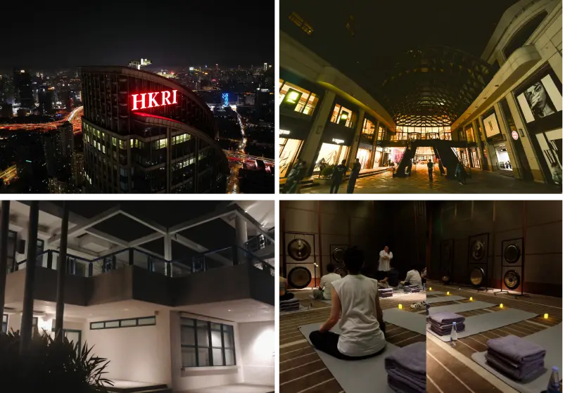 (由左至右)香港兴业中心、上海兴业太古汇、香港大屿山游艇会、上海素凯泰酒店等项目关闭非必要灯光