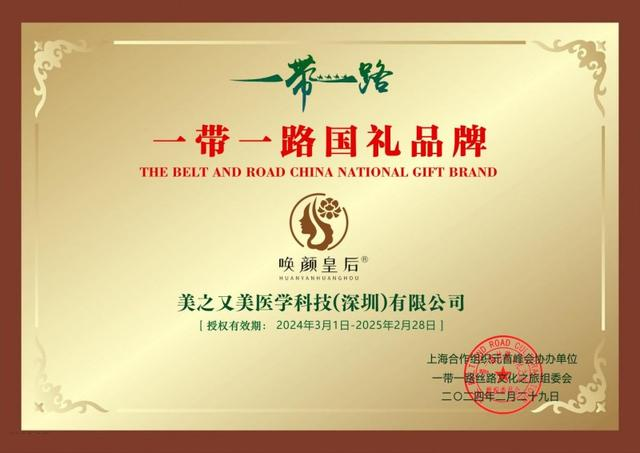 2024年3月1日,在国家“一带一路”世纪战略的辉煌光环下,唤颜皇后以其杰出的品质与深厚的文化底蕴,荣膺“一带一路·国礼品牌”的崇高称号。其系列产品不仅作为丝路沿线国家的官方礼品,赠予尊贵国宾,更在上合元首峰会等重大场合中惊艳亮相。这不仅象征着民族品牌的辉煌成就,亦是对唤颜皇后走向世界舞台的有力鼓励和肯定。
