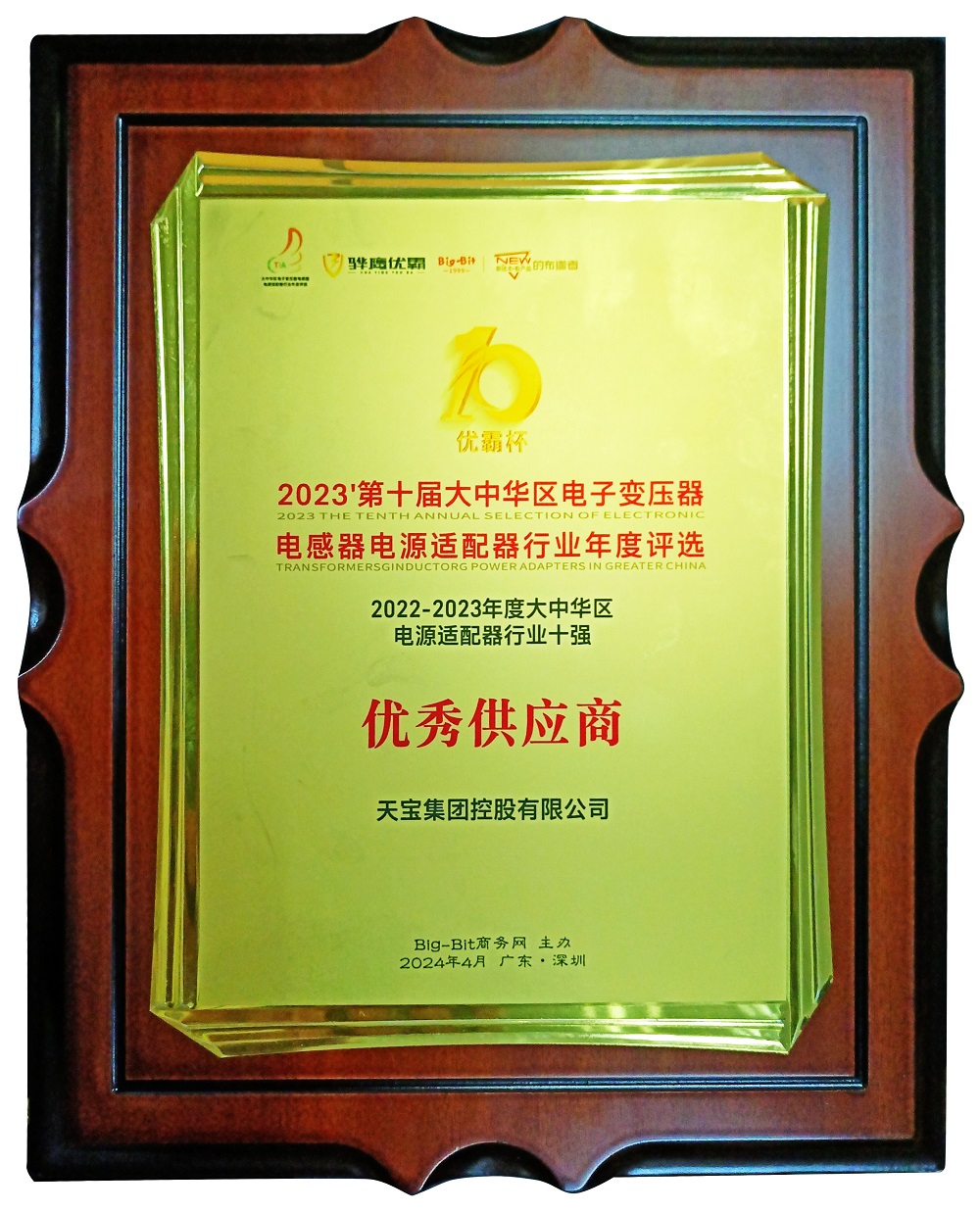 4月13日,大比特网在深圳国际会展中心举办2023第十届大中华区电子变压器电感器电源适配器行业年度评选颁奖盛典,天宝凭借卓越的表现,在多个友商中脱颖而出,荣获“大中华区电源适配器行业十强企业称号”再次证明了在电源行业的卓越实力和领先地位。