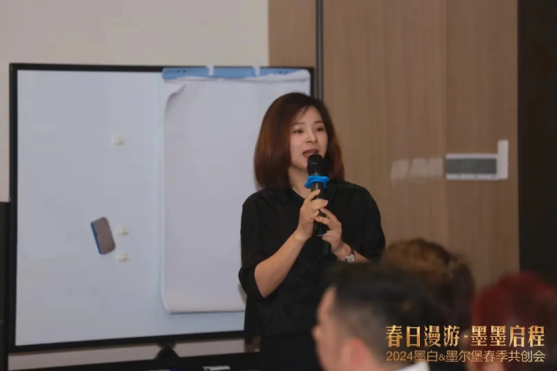 “这是一个最好的时代,也是一个最坏的时代,谁能创造出自我进化的理念,谁便能拥有最好的时代,否则将被时代淘汰”墨白&墨尔堡品牌创始人潘玲玲女士,在共创会现场进行了1个多小时的分享。她结合白酒行业发展趋势、墨白品牌文化理念传播内核、墨墨小酒馆打造的具体策略进行有见地、有态度的“干货”输出,主理人们认真记录、积极讨论、各抒己见,现场气氛热烈。
