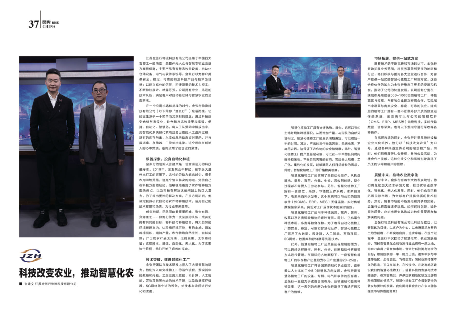 张建文,这位机械设计科班出身的企业家,一直活跃在工业智能制造的前沿阵地。2020年,他敏锐地捕捉到了智慧农业和植物工厂的发展机遇,果断地带领江苏金张行物流科技有限公司转型升级,投身于这一充满无限可能的新领域。他深知,只有紧跟时代步伐,不断创新求变,才能在激烈的市场竞争中立于不败之地。