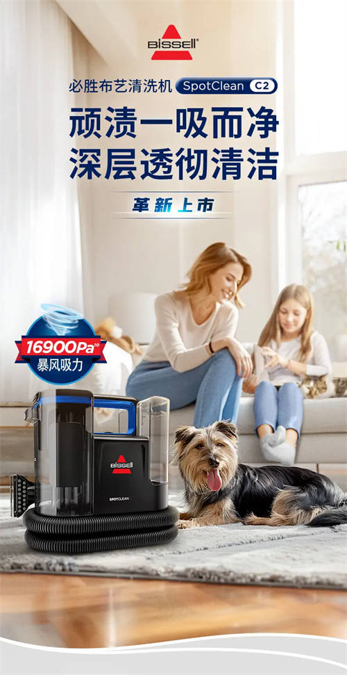 近年来,受大环境影响,人们对于家居生活品质和环境卫生的关注度持续攀升,家庭清洁需求也随之增长和分化,因而加速了清洁家电市场的多元化、精细化发展。除扫地机器人、洗地机等常见品类以外,布艺清洗机品类也逐渐崭露头角,市场增速十分亮眼,吸引各大电器品牌争相布局。在这一细分市场中,布艺清洗机品类的开创者BISSELL必胜已然先行一步,于近期推出了颠覆性创新升级的全新一代布艺清洗机SpotClean C2,不仅为行业树立起了新标杆,也为消费者带来了家庭清洁的品质革新。