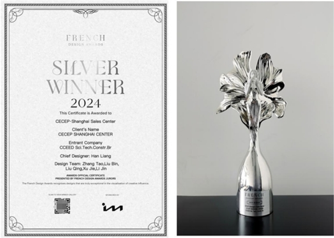 近日,全球知名的法国设计奖(French Design Awards,简称FDA)2024年度获奖名单揭晓,中建八局科技建设有限公司中节能上海首座营销中心室内设计项目(CECEP.Shanghai Sales Center)在数千个参赛作品中脱引而出,一举获得大赛银奖。