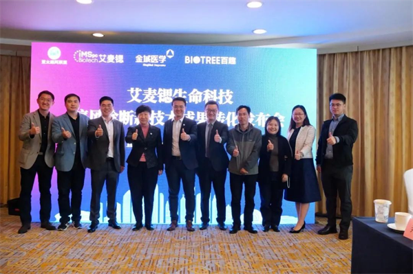 百趣生物、金域医学、艾麦锶三方出席发布会代表合影