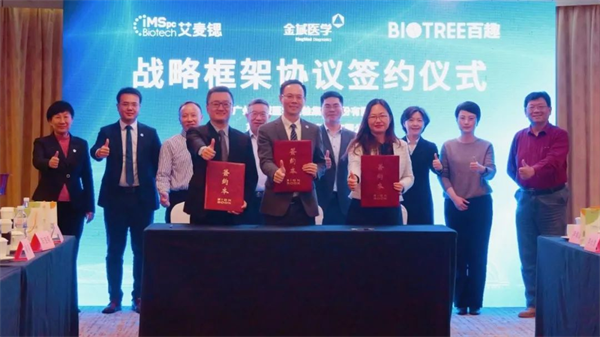 发布会的压轴环节,百趣生物、金域医学、艾麦锶生命科技三方共同签署战略合作协议,在痛风风险评估产品的成果转化应用,以及未来的市场推广上强强联合,让最新的科技成果尽快落地临床,走向市场,服务于全球痛风患者,助力“精准防控,畅享生活”的愿景成为现实。