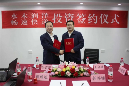 在随后举行的签约仪式上,水木润泽(北京)资产管理有限公司与北京畅速快递股份有限公司签订总投资3000万元的快递项目投资意向协议。水木润泽负责人吴吉涛与北京畅速快递股份有限公司总裁王金福举行了签约仪式。
