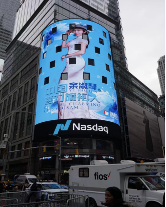 2018年,余淑琴以一袭华美旗袍,代表中国形象登上了美国纽约时代广场的大屏幕。