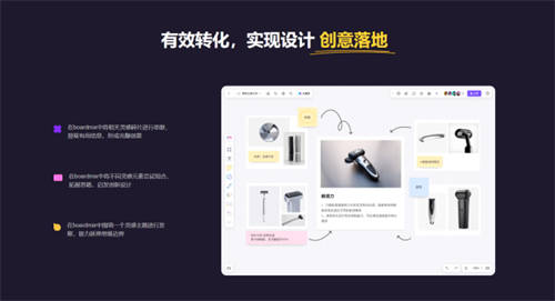 创意落地:在boardmix中串联灵感碎片,提取有用信息,形成完整创意,并尝试不同组合以启发创新设计。