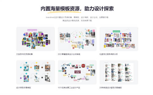 海量模板资源:boardmix模板社区内置设计灵感收集、情绪板、设计调研等模板资源,支持免费下载。