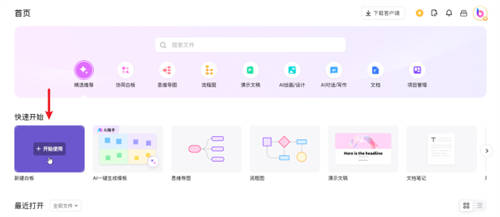 在浏览器打开boardmix首页,点击「新建白板」,创建一个boardmix文件。