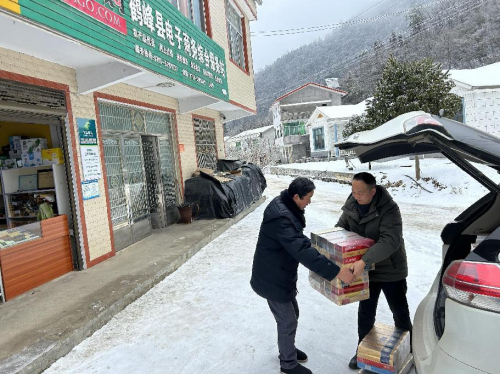 五里乡六峰村是海拔最高最偏远,也是暴雪最大地方,路面积雪深度达高,坡度大,大雾弥漫,导致物流配送更加困难。鹤峰县局(营销部)成立党员先锋队,机关党员干部下沉一线,不惧寒冷、不怕吃苦,保障物流配送的通道顺畅,无法到达的零售客户,党员干部们就手搬肩扛徒步前行,经过努力,顺利将卷烟送到了该地区零售户杨年友、马玉秀等九户手中,打通卷烟物流配送“最后一公里”。