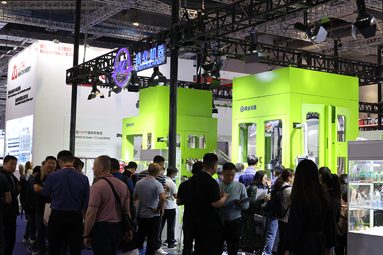 Chinaplas 2024上海国际橡塑展,柳州市精业机器有限公司(以下简称“精业机器”)展出3台全自动一步法注拉吹中空成型机,分别展示其在日用品、医药、化妆品行业包装的典型应用,可适用的材料包括PET,PETG,PC,PP,PCTG等。
