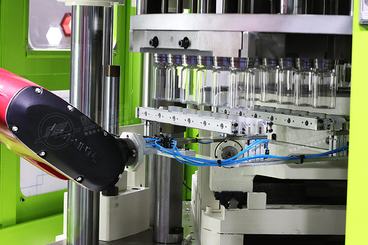 现场还演示了双排模具的一步法注拉吹机WISBIII-110AD,可以满足在医药包装、食品包装等行业中。谈及医药行业的包装的特殊要求,李晖表示,首先医药行业的包装对于外观质量、功能性以及密封性、洁净度的要求会更高一些,这也是医药行业本身的要求。精业机器的全自动一步法注拉吹中空成型机可以一站式完成加料、原料高温融化、注射成型、吹塑等步骤,无需人工更换,免去二次污染,因此可以很好地保证洁净度的需求。