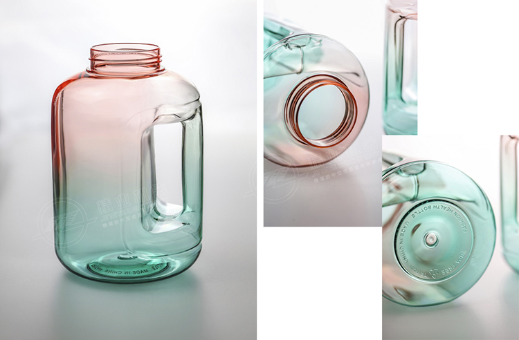 “现在年轻人越来越喜欢健身和户外运动,对于运动水杯的需求量也越来越多, 塑料运动水杯更安全、环保。而吨吨桶水杯的时尚、便捷、大容量,更是倍受年经人的宠爱。”李晖说到,“目前使用挤出的方式去生产吨吨桶,瓶底合缝线较大,瓶口瓶底会产生很多废料,一方面不美观,另一方面会增加生产成本。精业机器创造性地开发出生产吨吨桶一步法注拉吹生产工艺,生产出的制品外观精美,瓶底无合缝线,配上双色更具高颜值,广受欢迎,因此大大提升了产品品质和性能!