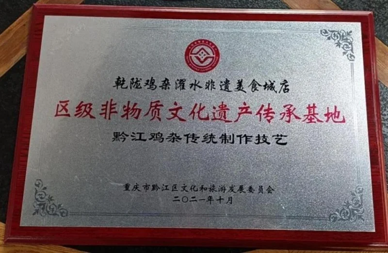 这样的制作技艺一代代传承到了李更锦这一辈,作为非遗传人,他在怀揣着传承黔江鸡杂烹饪技艺初心的同时,也在不断探索创新,将现代餐饮理念融入乾陇鸡杂其中,让这道传统美食焕发出新的生机与活力。
