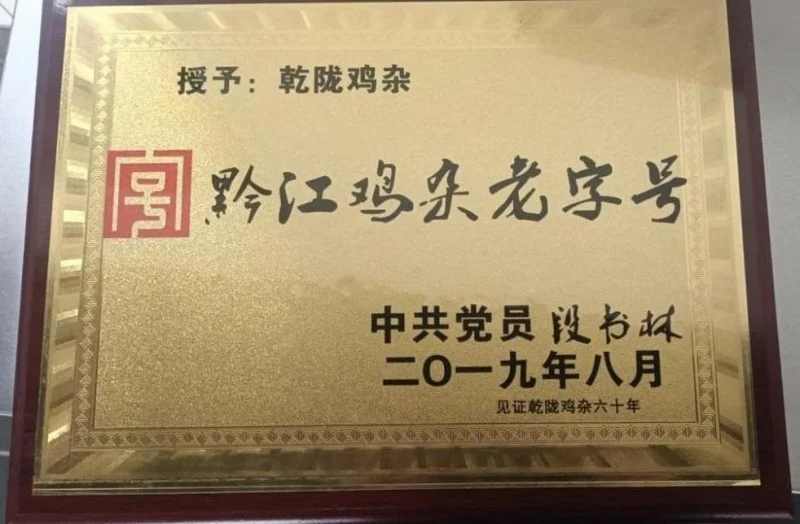 乾陇鸡杂的历史源远流长,可以追溯至数百年前。根据碑文记载,乾陇鸡杂如今传承人的祖母段廷树于1937年就开始经营黔龙餐馆,在上世纪80年代末更名为黔龙鸡杂,后因商标原因在2018年更名为“乾陇鸡杂”。而黔龙鸡杂菜品起源更早,源自皇清道光初期,由烈祖李进玺时任重庆府府厨时所创,是一道具有土家族文化的特色家常菜。