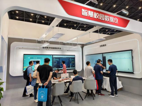 其中,我们所推出的多套基于龙芯 1 号、2 号、3 号芯片国产化平台的教育解决方案,备受广泛关注。该解决方案全面涵盖智慧校园的各个层面,实现了校园管理的全面数字化与智能化,大幅提升了管理效率与成效。此外,这一解决方案还提供了丰富多样的教学工具与实践平台,有力促进了教学效果的提升以及学生创新能力的培养。所展出的智慧校园数据仓、信创智慧教室、信息技术应用创新实验室、信息技术数字提升教室等模块,为观众展现了一幅基于国产化的全新校园蓝图。其中,高职校计算机能力提升实验箱、数据中心、集控中心、长深教学机器人、LoongBlock 青少年编程平台、信创智慧黑板、信息科技特色教学展示平台等产品,吸引了众多嘉宾、专家以及同行们驻足参观,对我们的专业化水准给予了高度肯定。